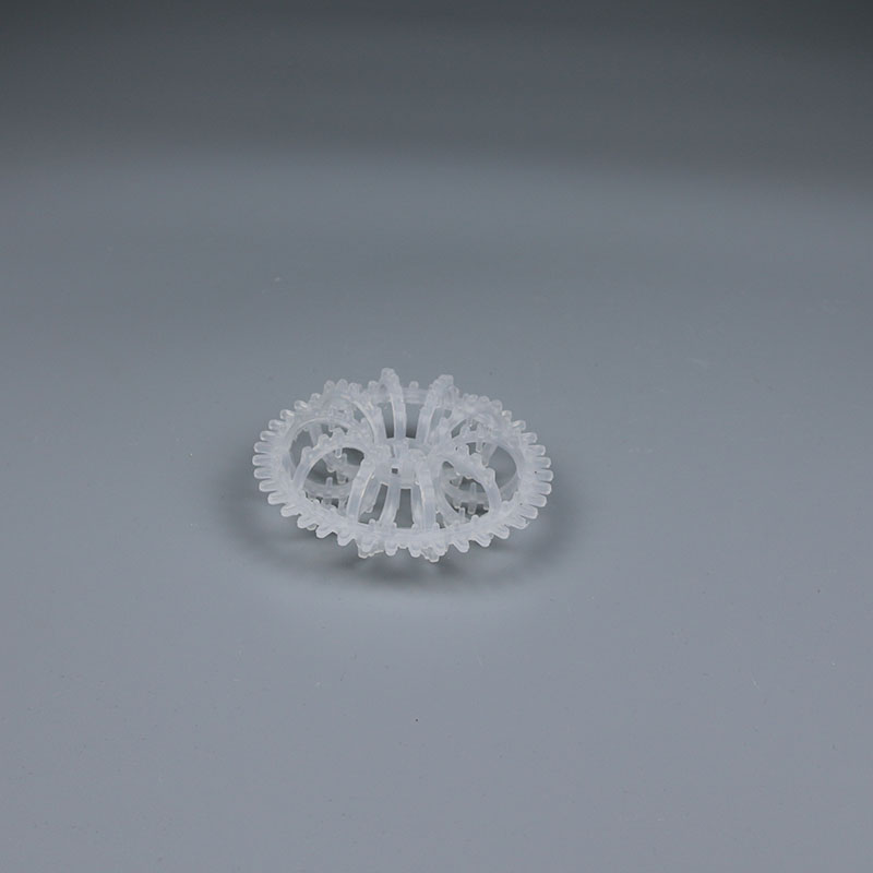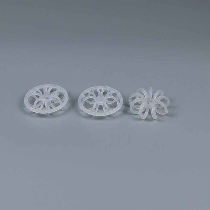 塑料花環(huán)填料是由許多圓環(huán)結(jié)繞而成,由于填料的空隙處能有較高的持液量,可使塔內(nèi)液體的停留時間較長,從而增加了氣液兩相的接觸時間,提高了填料的傳質(zhì)效率。花環(huán)填料具有空隙率大,壓降和傳質(zhì)單元高度低,泛點高,氣液接觸充分,比重小,傳質(zhì)效率高等特點,多用于氣體洗滌、凈化塔中。